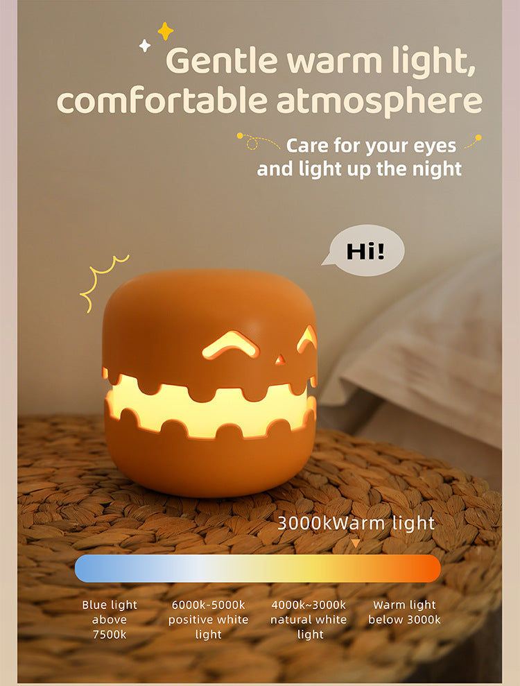 Create a cozy and relaxing atmosphere with the Glow-o-Ween Pumpkin Lamp.🎃